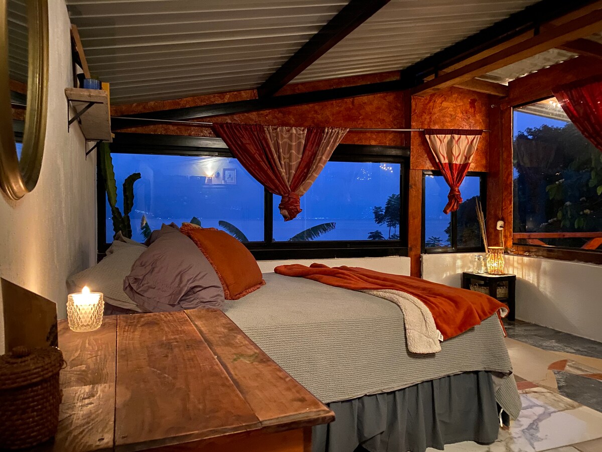 Príďte si vychutnať našu súkromnú kamennú chatu pokrytú kvetmi na jazere Atitlan, predtým prevádzkovanú ako Posada Santiago! Táto nehnuteľnosť, rýchla tuk-tuk jazda alebo 10 minút chôdze od Santiago Atitlan, je ideálnym miestom na oddych v prírode a na osamelom mieste pri jazere. Chata môže ubytovať tri osoby a je vybavená vlastnou vonkajšou kuchyňou, kde môžete variť a grilovať alebo si jednoducho vychutnať kávu v pokojných ranných hodinách a v noci pripraviť oheň s vínom pod hviezdami.
