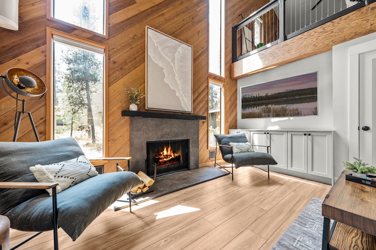 Štýlový luxusný rodinný dom s 8 vstupenkami SHARC (bazén a lenivá rieka), 6 bicyklami Cruiser, vírivkou, 3 novými Smart TV na streamovanie, stolným tenisom, stolovými hrami. Krátka prechádzka k rieke a mostu Cardinal Landing Bridge. Rýchle 1 GB Wi-Fi, propánové grilovanie, klimatizácia, útulný krb na drevo. Plne zásobená kuchyňa na varenie, bielizeň vo vnútri. Tichá a súkromná veľká terasa s výhľadom na spoločný priestor s voľne žijúcimi zvieratami. Bicykel všade s ľahkým prístupom. Len pár minút od Mt Bachelor na lyžovanie a sánkovanie.