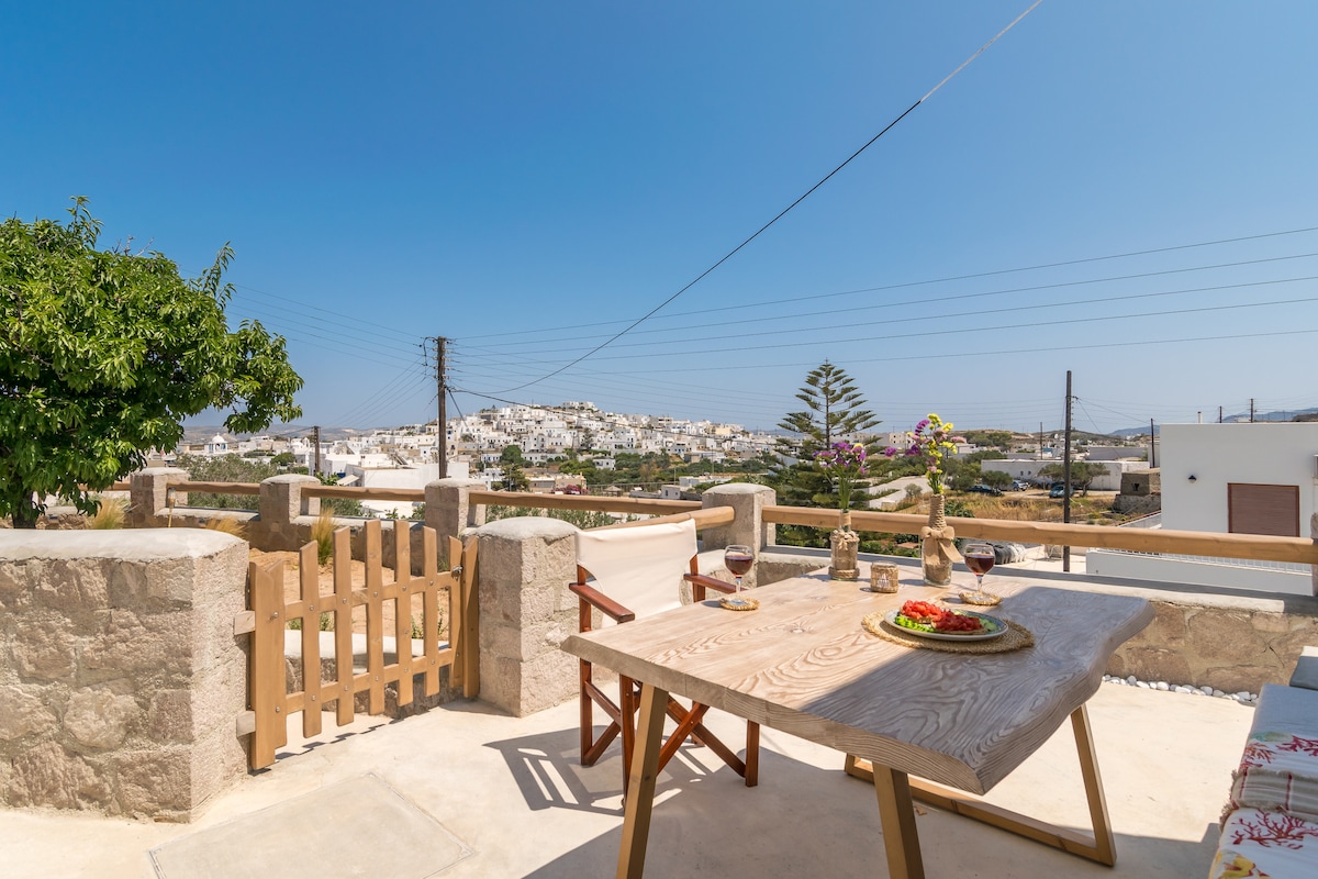 Tradičný kykladský dom, ktorý sa nachádza v pokojnej štvrti v Triovasale a je vzdialený len 100 m od centra dediny. Nachádza sa 4 km od prístavu. Má vlastný dvor, ktorý môžu hostia využívať. Okrem toho poskytuje bezplatné súkromné parkovisko.